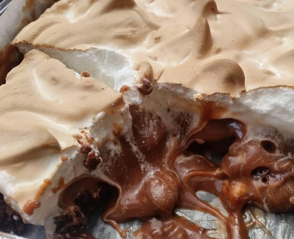 - Spread the meringue over the cool brownie and bake for 5 minutes or until the peaks turn brown. Set aside to cool before serving.